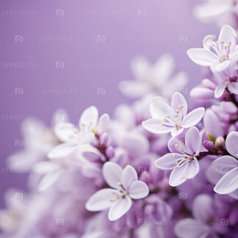 Выстрел нежных цветов сирени, лепестков мягкого, пастельного фиолетового и белого, на размытом фоне. Изображение фиксирует сложные детали цветов, демонстрируя их нежную красоту. ИИ