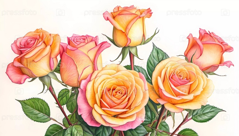 Яркая романтическая живопись отличается пышным расположением красиво цветущих роз в различных оттенках, захватывая сущность любви и природы в красочной обстановке сада при дневном свете. Генерирующий ИИ