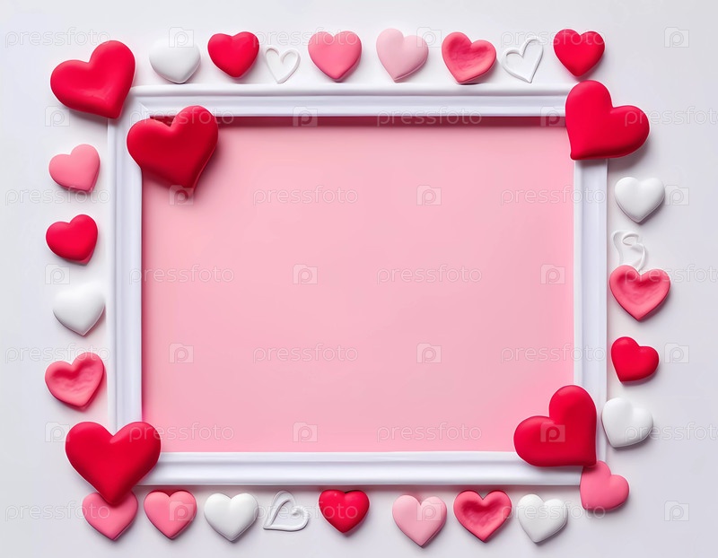 Игривый каркас на тему сердца демонстрирует множество красных и розовых сердец на мягком розовом фоне, обеспечивая идеальное пустое пространство для настройки и творчества. Генерирующий ИИ
