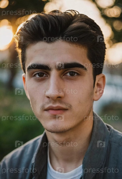Молодой армянский мальчик стоит задумчиво, обрамленный мягким солнечным светом, фильтрующим деревья, источающим тихую уверенность, взаимодействуя с природой вокруг него