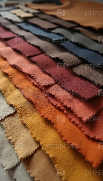 Слои разноцветных замшевых образцов каскада в поразительном градиенте, отличающихся богатыми земными тонами и смелыми оттенками.Креативное текстильное решение для дизайнеров и художников Generative AI