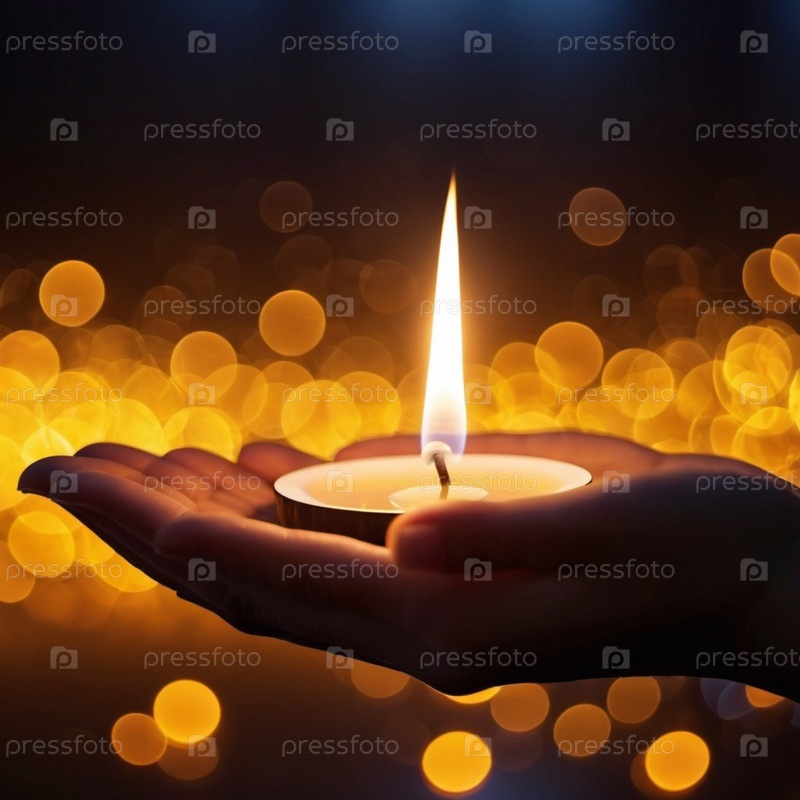 Свеча горит в блюде с плеском дыма, поднимающегося из пламени. Фон мягко размыт, что предполагает естественную теплую обстановку в помещении. Теплое свечение и спокойная сцена создают ощущение спокойствия