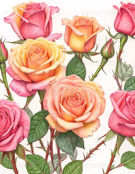 Яркая романтическая живопись отличается пышным расположением красиво цветущих роз в различных оттенках, захватывая сущность любви и природы в красочной обстановке сада при дневном свете. Генерирующий ИИ