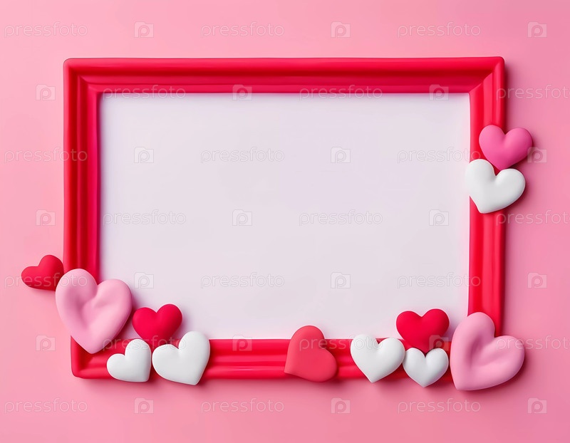 Игривый каркас на тему сердца демонстрирует множество красных и розовых сердец на мягком розовом фоне, обеспечивая идеальное пустое пространство для настройки и творчества. Генерирующий ИИ