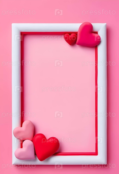Игривый каркас на тему сердца демонстрирует множество красных и розовых сердец на мягком розовом фоне, обеспечивая идеальное пустое пространство для настройки и творчества. Генерирующий ИИ