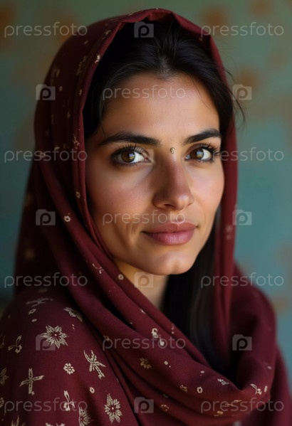 Захватывающее выражение молодой йеменской женщины, одетой в элегантную традиционную одежду, демонстрирующей свою природную красоту на мягко окрашенном фоне, излучающем культурное богатство