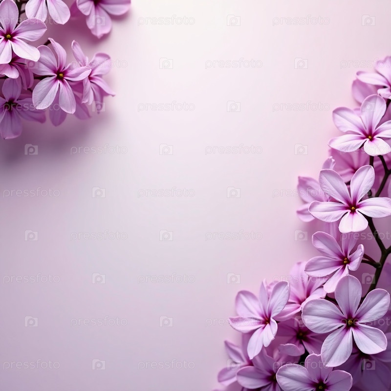 Окруженный скоплениями сиреневых цветов, возникает нежное успокаивающее пустое пространство. Спокойная обстановка вызывает чувство мира. Мягкие оттенки лаванды приглашают зрителей остановиться и поразмышлять. Безмятежность, красота. ИИ