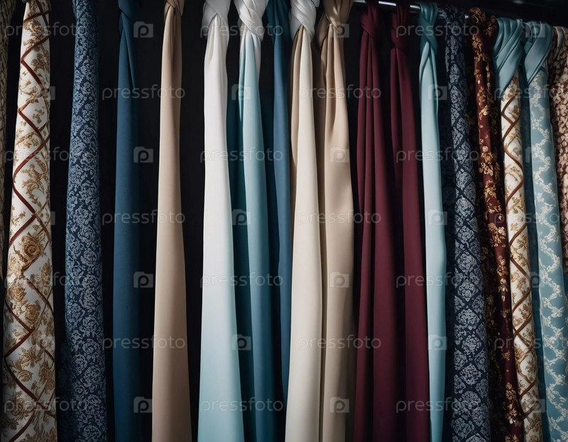 Коллекция штор изящно драпируется, демонстрируя смесь богатых цветов и текстур. Тканевые панели ловят мягкий дневной свет, улучшая приглашающую атмосферу комнаты. Генерирующий ИИ