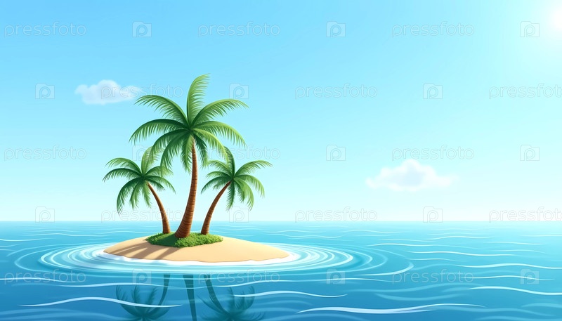 Живописный тропический остров имеет изящные пальмы, мягко покачивающиеся в океанском бризе. Спокойные воды сверкают под теплым солнцем, приглашая к расслаблению и приключениям Генеративный ИИ