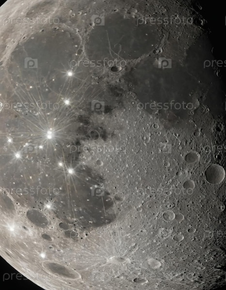 Захватывающий вид показывает лунный кратер, выгравированный с замысловатыми деталями и сияющими лучами, освещающими прочную поверхность Луны, приглашая к удивлению и исследованию генеративного ИИ