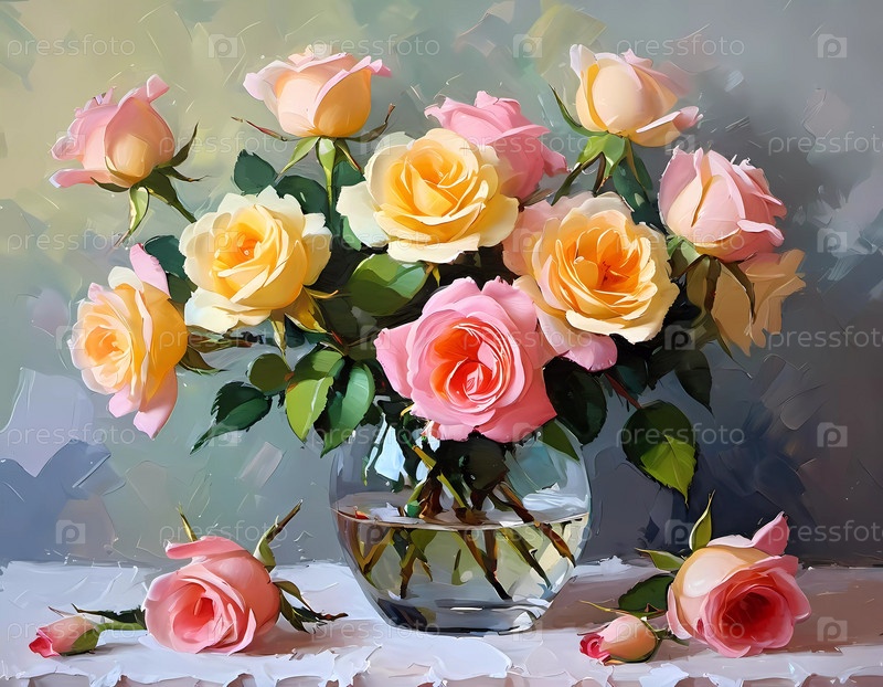 Яркая романтическая живопись отличается пышным расположением красиво цветущих роз в различных оттенках, захватывая сущность любви и природы в красочной обстановке сада при дневном свете. Генерирующий ИИ