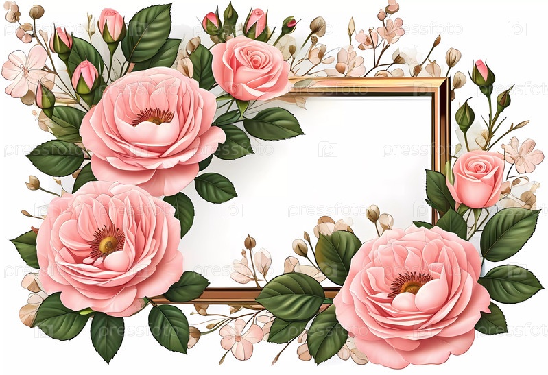 Мягкие красные розы сплетаются вокруг чистого центрального пространства, предлагая очаровательное полотно для сердечных сообщений. Идеально подходит для различных случаев, этот цветочный дизайн источает очарование и элегантность