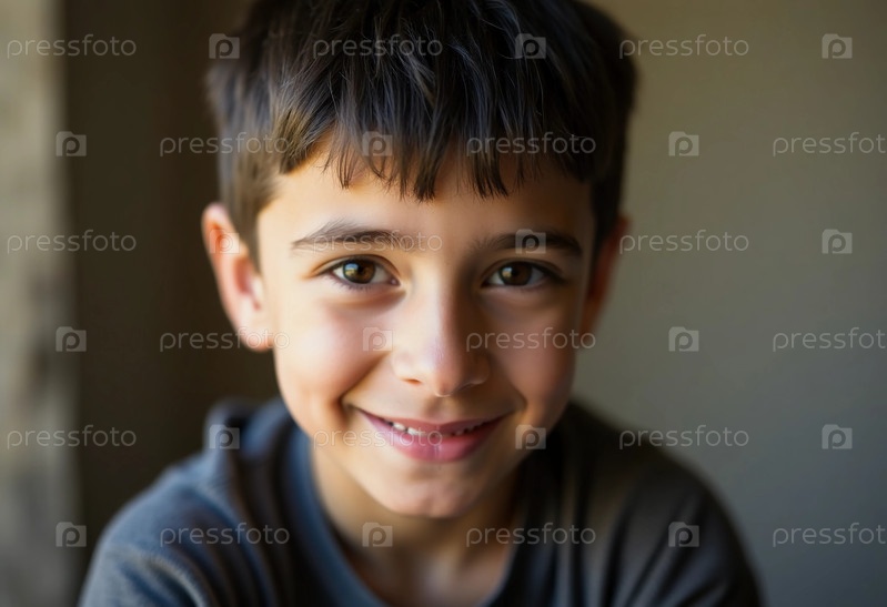 Молодой парень из Чечни сияет от радости, когда он смотрит вдаль, его выражение излучает счастье и невинность