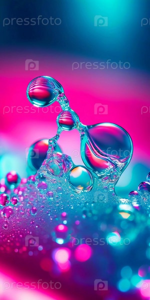 Множество ярких капель лопается в красочном всплеске, создавая потрясающее отображение ярких оттенков на мягко размытом фоне. Замораживание движения. Красота природы в данный момент. ИИ