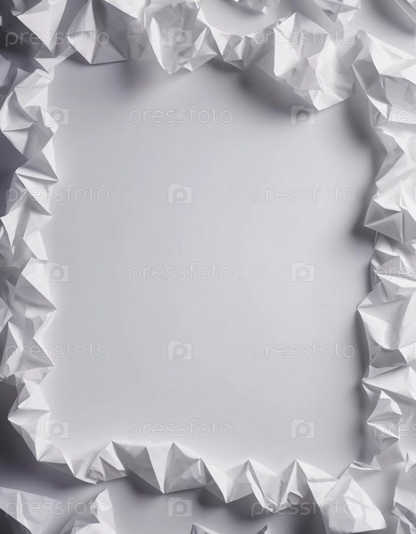 Сжатая белая бумага образует текстурированную границу вокруг пустого пространства, приглашая к творчеству для написания, рисования или дизайн-проектов в чистом, минималистском стиле. Копируйте пустое место для текста. Генерирующий ИИ