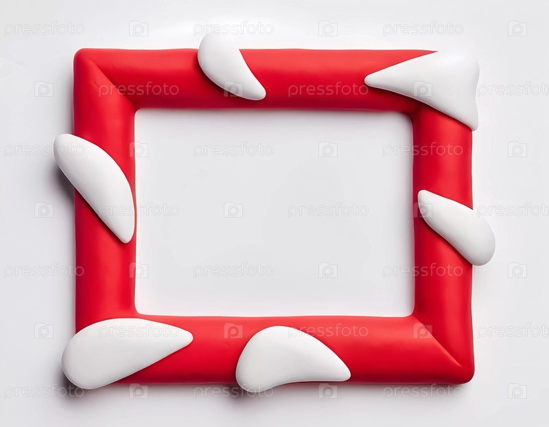 Красочная рамка, созданная из белого и красного теста, сидит на простом фоне, обеспечивая игривое и привлекательное пустое пространство для творческих дисплеев или произведений искусства