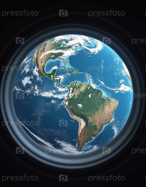 Наблюдая за планетой Земля через иллюминатор открывает захватывающий вид на заснеженные горы, безмятежные океаны и рассеянные облака, подчеркивая красоту планеты сверху. Генерирующий ИИ