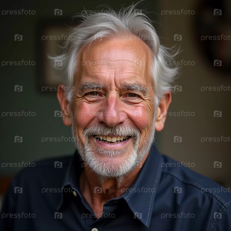 Пожилой мужчина, житель США, с белыми волосами и бородатыми лучами радостно демонстрирует свое дружелюбное поведение в повседневной одежде. Теплая обстановка в помещении усиливает его привлекательную улыбку. Генерирующий ИИ