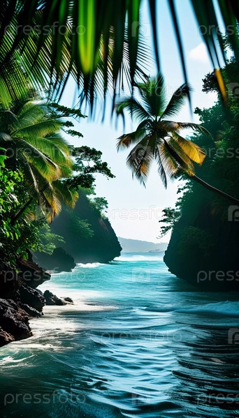 Дышите свежим океанским бризом, стоя на краю тропического убежища. Ослепительные бирюзовые воды пульсируют мягко, когда ладони качаются над головой в этом блаженном месте