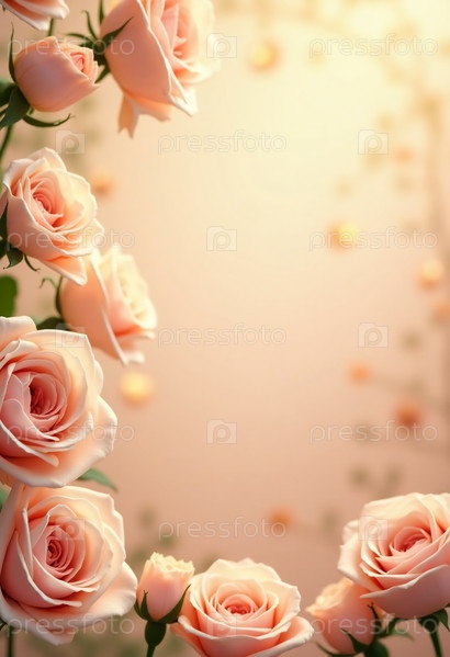 В этой очаровательной обстановке нежные бежево-розовые розы мягко обрамляют сцену, мягкие лепестки, теплое свечение. Эффект размытого боке усиливает спокойствие, приглашая зрителей в мир красоты и спокойствия. ИИ