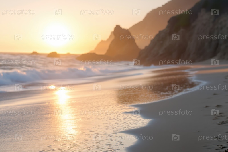 Прекрасный закат на пляже. Размытое изображение моря