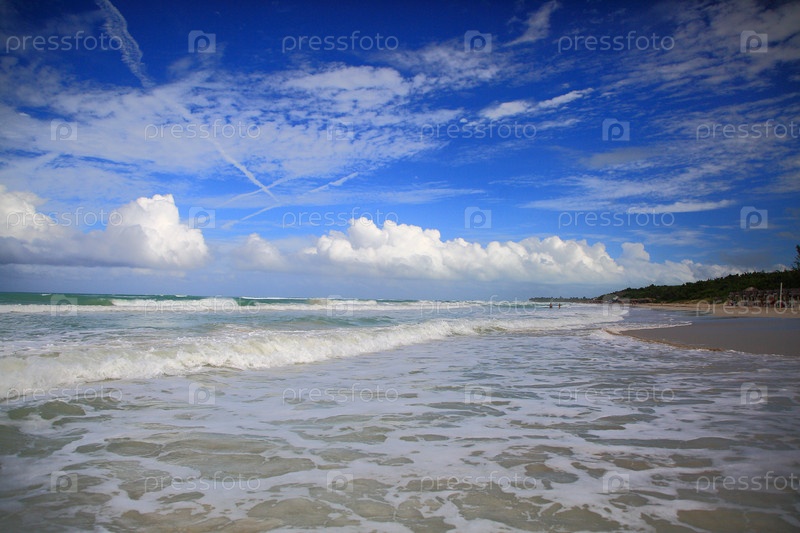 Вид вдоль береговой линии Варадеро в солнечный день. Куба