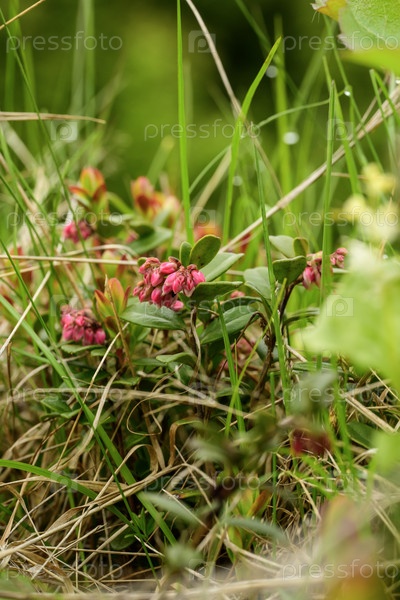 В лесу цветет дикая брусника