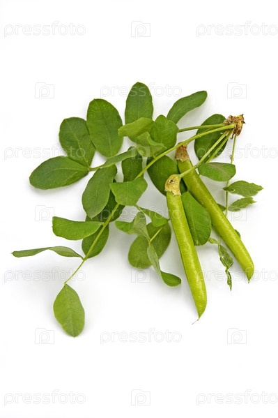 Веточка акации с зелеными листьями и стручками