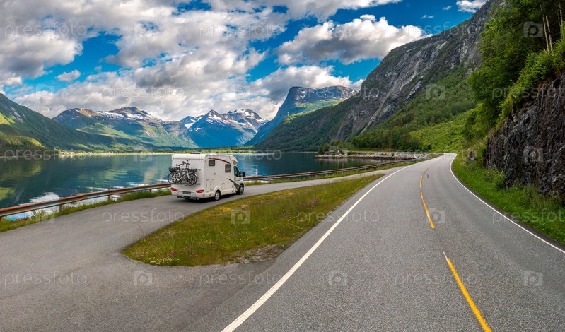 Семейный отдых путешествия RV, каникулы в автодоме, Караван автомобиля Отпуск