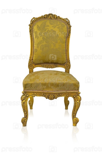 Золотое кресло изолировано на белом фоне. Элемент дизайна с обрезкой пути
