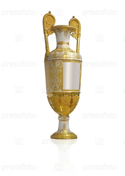 Фарфоровая ваза с золотым орнаментом изолирована на белом фоне. Элемент дизайна с обрезкой пути