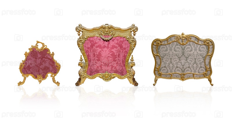 Набор золотых экранов огня изолирован на белом фоне