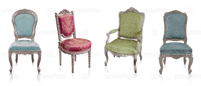 Серебряные стулья, изолированные на белом фоне