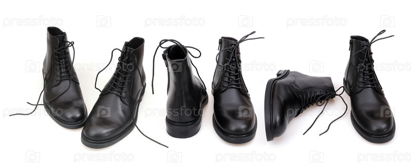 Модные черные сапоги для мужчин и женщин изолированы на белом фоне