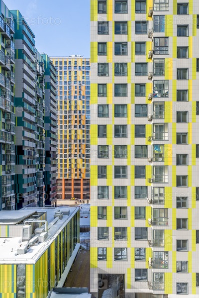 Фасад современного многоэтажного жилого дома в Москве