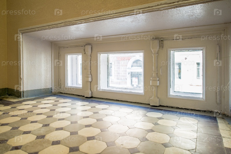 Деревянное окно и кафельный пол в подъезде деревянного дома