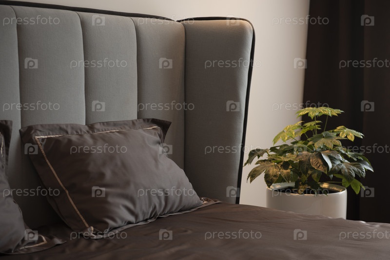 Красивое постельное белье на двухспальной кровати. Интерьер спальни