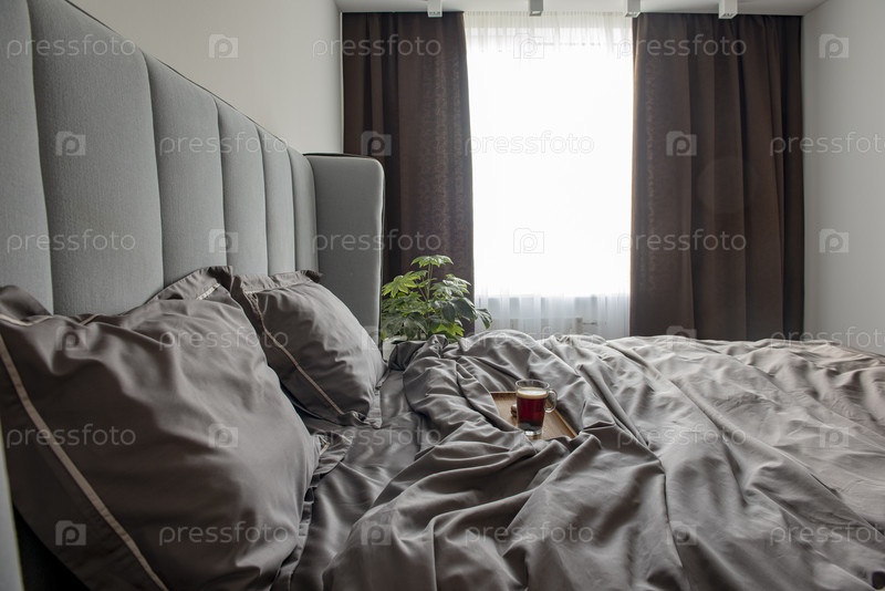 Красивое постельное белье на двухспальной кровати, Подушки и одеяло