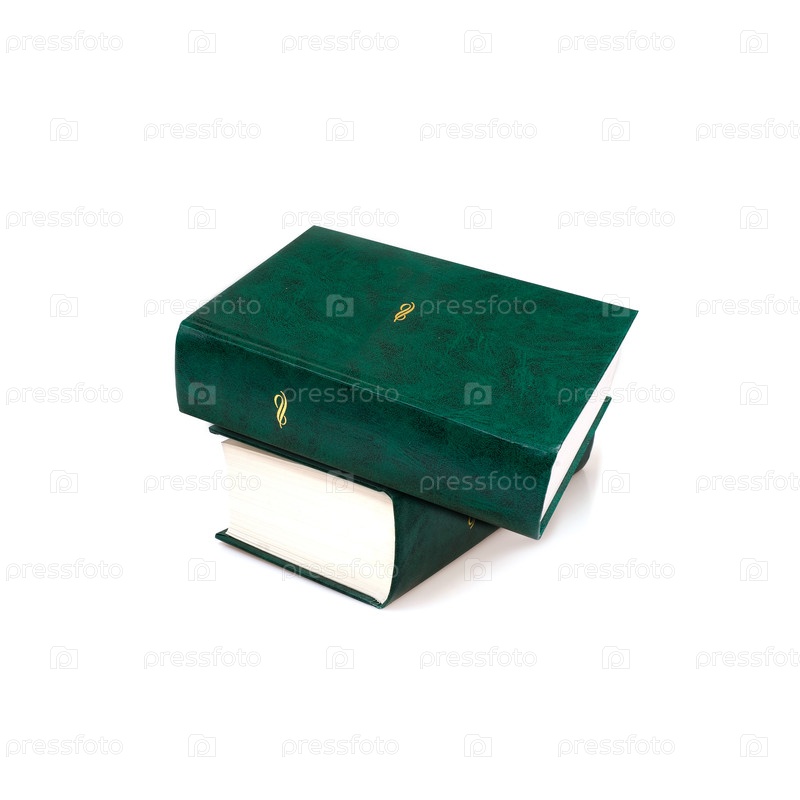 Стек книг в зеленых обложках с белыми листами, изолированными на белом фоне