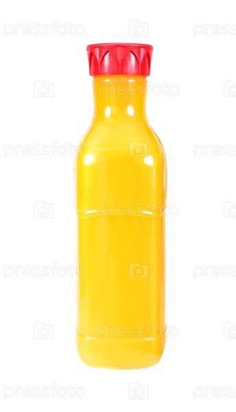 Апельсиновый макет бутылки сока изолирован на белом фоне