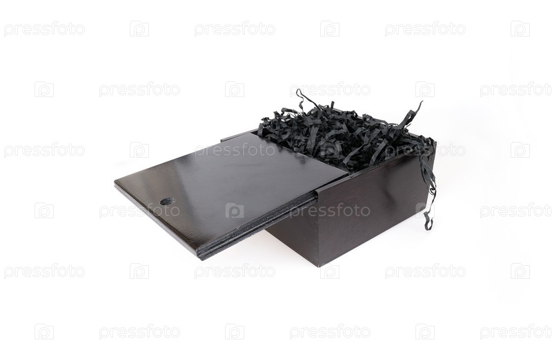 Черная подарочная коробка, изолированная на белом фоне