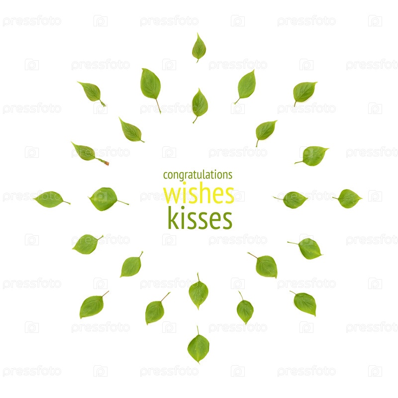 Шаблон поздравительной открытки с рисунком зеленых листьев и место внутри круга для надписи