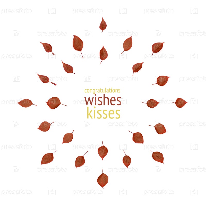 Шаблон поздравительной открытки с рисунком красных листьев и место внутри круга для надписи