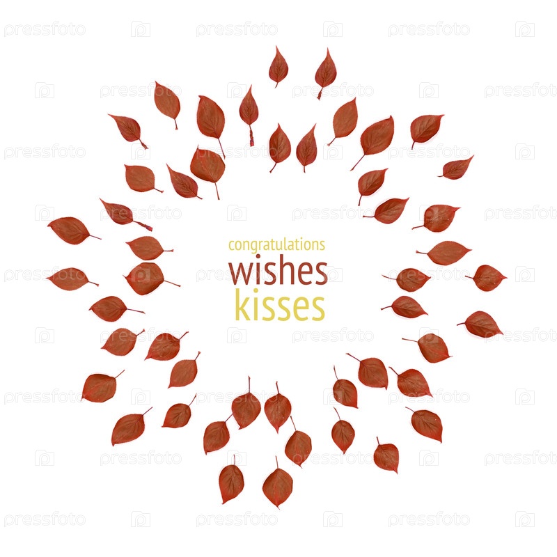 Шаблон поздравительной открытки с рисунком красных листьев и место внутри круга для надписи
