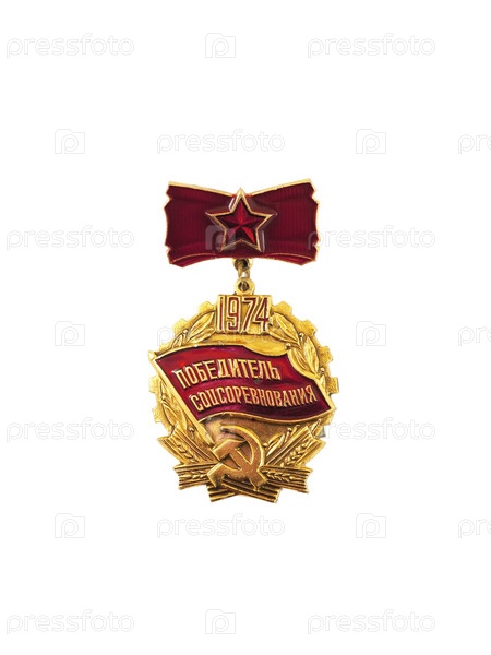 Трудовая премия Советского Союза. Надпись на знаке на русском языке означает на английском "Победитель социалистического соревнования"
