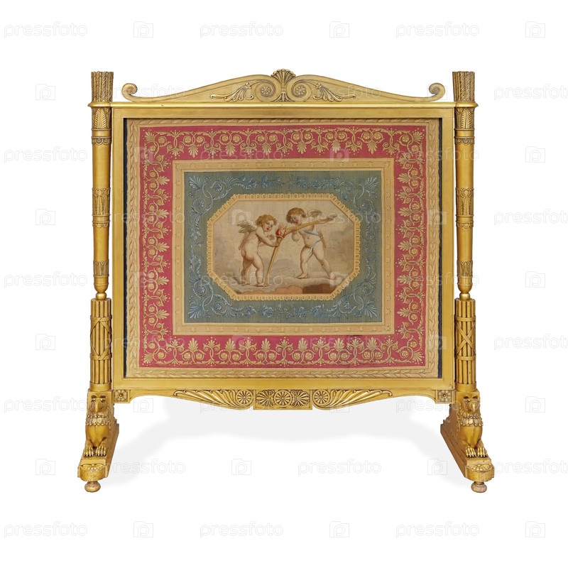 Золотой экран огня с орлом и венком победы наверху изолирован на белом фоне. Элемент дизайна с обрезкой пути