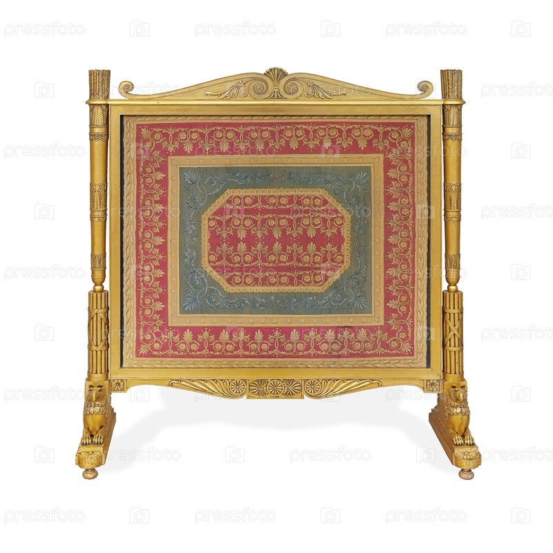 Золотой экран огня с орлом и венком победы наверху изолирован на белом фоне. Элемент дизайна с обрезкой пути