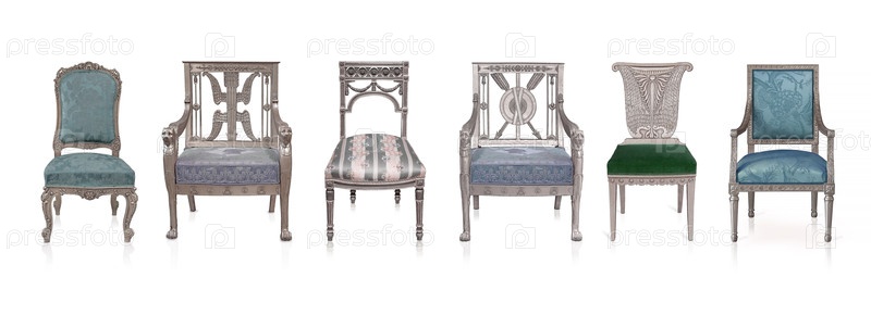 Серебряные стулья, изолированные на белом фоне