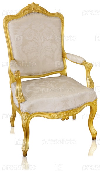 Золотое кресло изолировано на белом фоне. Элемент дизайна с обрезкой пути