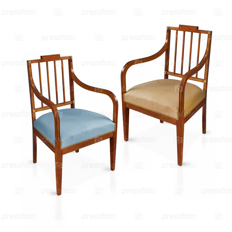 Древние деревянные стулья, изолированные на белом фоне